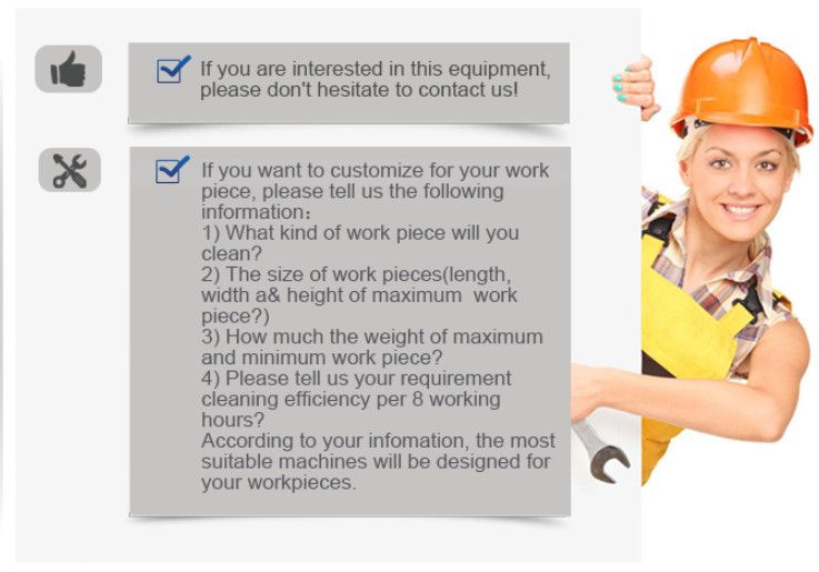 | Cleaning material | Shot steel/shot grit/wire cut etc | After-sales service | Engineers available to service machinery |